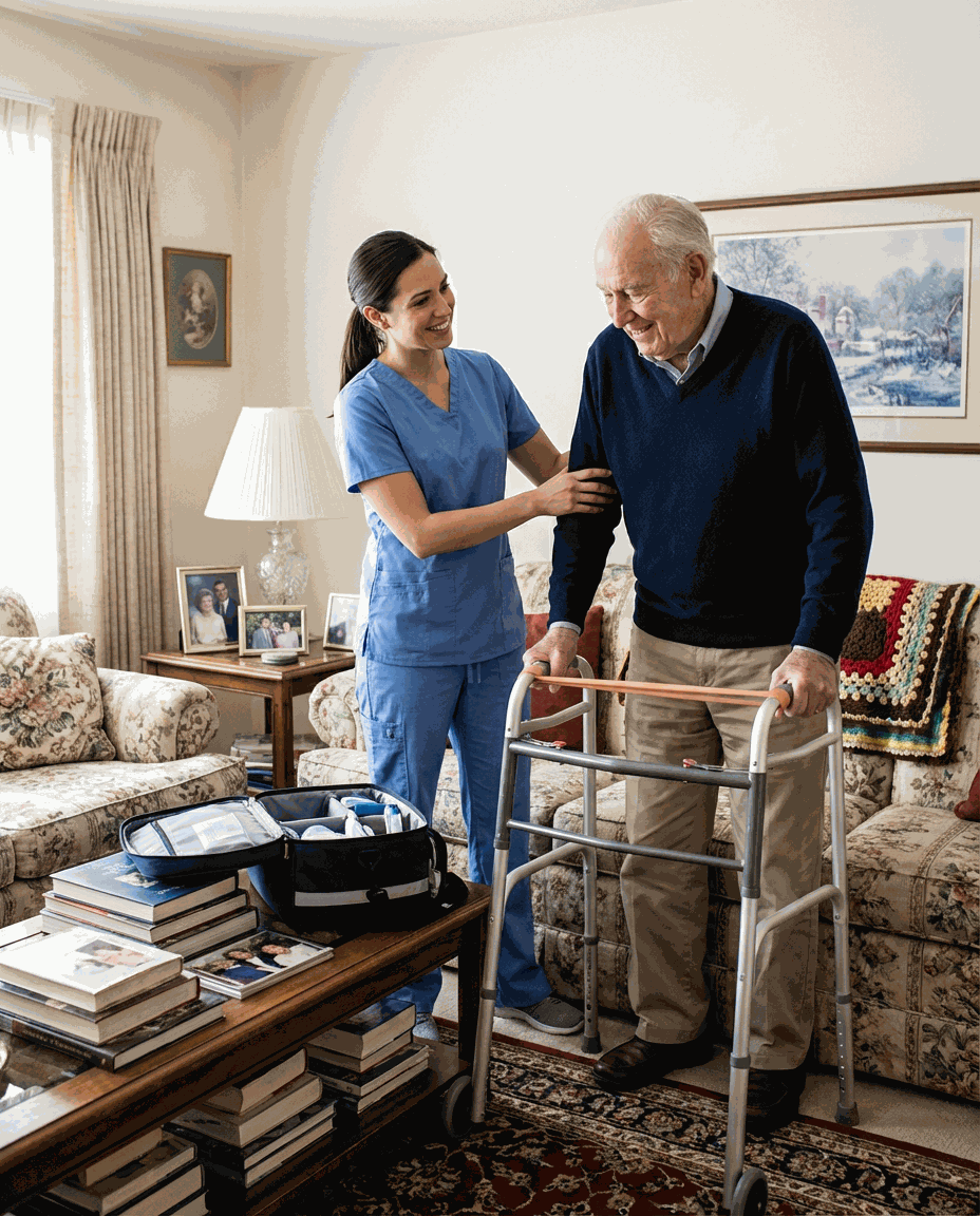 Personalized care at home, ideal for post-operative, geriatric, or mobility-restricted patients.